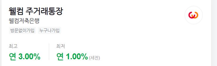 🔹 웰컴저축 주거래통장