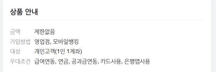| 200만 원 이하 | KB모니모 / 우리 우월한 월급통장 | 연 3.1~4.0% | 자동이체 등록, 급여이체 실적 등 |